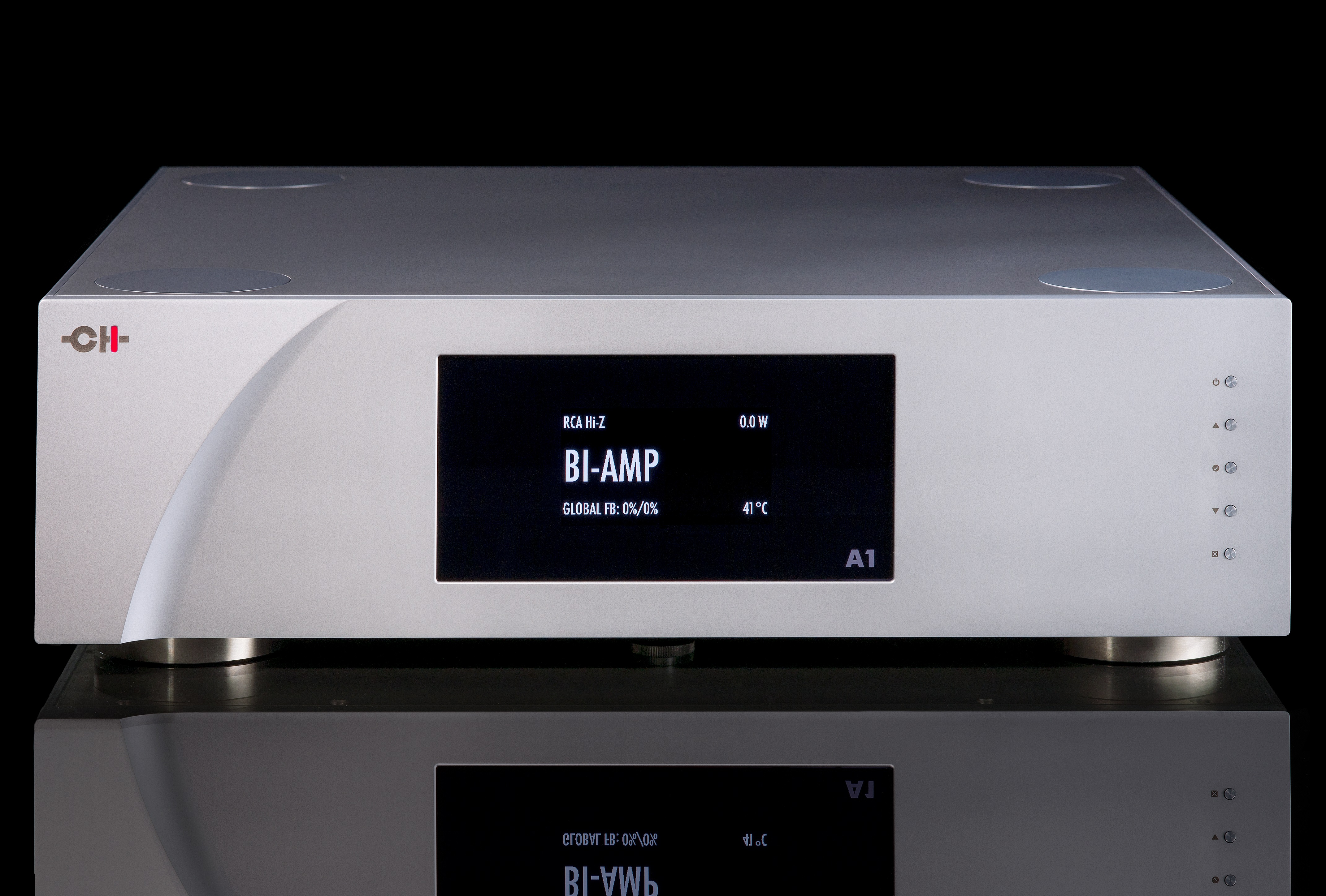 Усилитель мощности A1 был разработан изначально как модульная конструкция. Он может быть оснащен одним аналоговым входом в случае если А1 используется для одного канала, второй аналоговый вход также может быть установлен производителем на заводе, если это необходимо для получения стереофонического сигнала. Центральный блок питания занимает большую часть внутреннего пространства корпуса. Огромный 1'200VA трансформатор установлен на сайлент блоки, чтобы максимально избежать передачу вибраций. Он защищен как магнитным экраном, так и электростатическим. Для достижения оптимальных тепловых характеристик, диодные мосты выходного каскада смонтированы на задней стороне передней панели и обладают сверхскоростным мягким восстановлением. Фильтрующие 4-полюсные конденсаторы гарантируют, что пики тока, необходимые для конденсаторов выпрямителей находятся вдали от центральной точки заземления. Аттенюатор в диапазоне 24 дБ - с шагом 0,5 дБ, встроенный в каждом канале, служит для идеального соответствия чувствительности акустических систем и размеров помещения. В отличие от аналоговых цепей всех остальных продуктов CH Precision, выходной каскад А1 может быть сконфигурирован с некоторой глобальной обратной связью. Глобальная обратная связь регулируется в процессе эксплуатации посредством пользовательского интерфейса передней панели, во время этой операции переключаются только несколько реле. Каждый шаг составляет 20%, начиная от 0% - только локальная обратная связь, и далее до 100%. В случае, если усилитель А1 используется в режиме двухканального усиления, пользователь может выбрать различное соотношение обратной связи для каждого канала. Специальная схема на элементах ThermalTrak от Semiconductor смонтирована вокруг выходных каскадов для контроля температурного режима. Конструкция усилителя A1 класса AB превосходит чистый класс А с обычной компенсацией смещения. Для этой схемы подана заявка на патент.