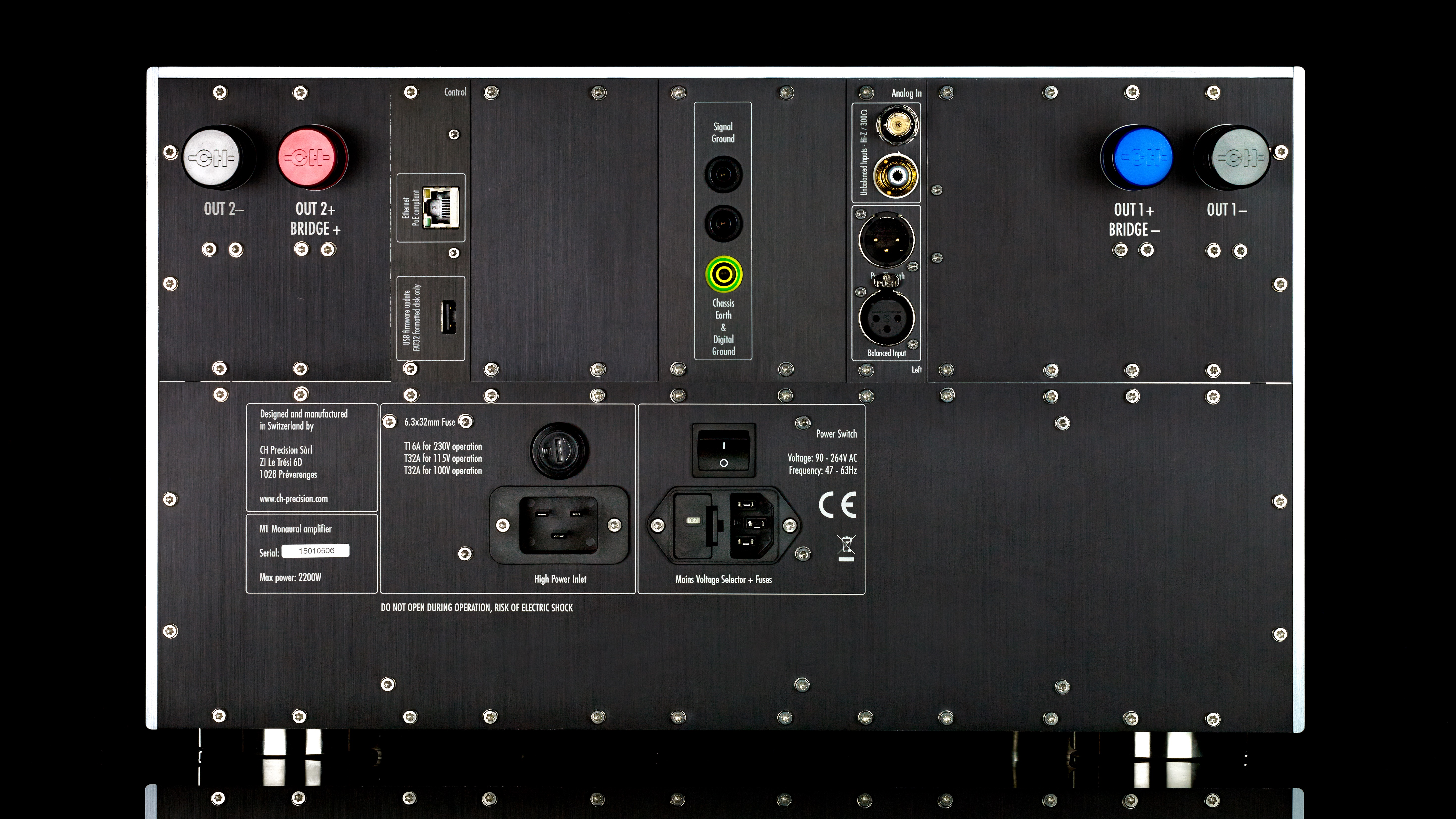 Усилитель мощности M1 был разработан с учетом модульной архитектуры. Он может быть оснащен одним аналоговым входом, в том случае если М1 используется для одного канала. Модульность конструкции обеспечивает следующие режимы работы: одноканальный режим, пассивный режим двухканального усиления, активный режим двухканального усиления (требуется плата второго аналогового входа), мостовой режим, режим стерео (требуется плата второго аналогового входа)
