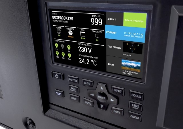 Christie Boxer Series оснащены полным набором разъемов, включая 3G-SDI HDBaseT, Display Port, DVI-I, HDMI, VGA и 5 BNC. Кроме того, в комплектацию входят LCD экран для вывода показаний проектора, набор всех необходимых объективов и даже встроенное отделение для инструментов.