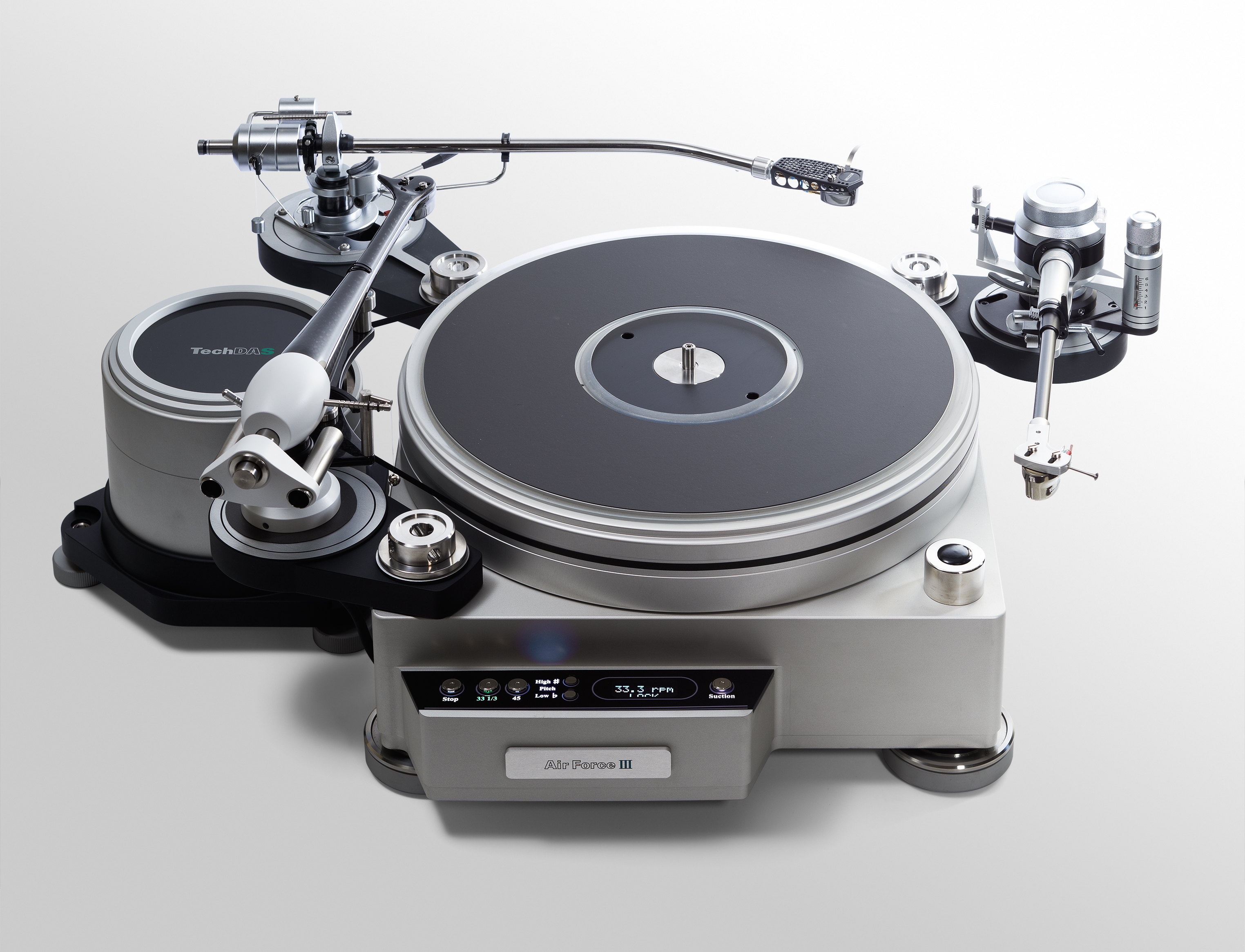 Основная корпус имеет минимальный размер и изготовлен из цельного алюминия путем высокоточной резки, как и Air Force One. До 4 тонармов, от короткого (9”) до длинного (12”), может быть установлено на раме.