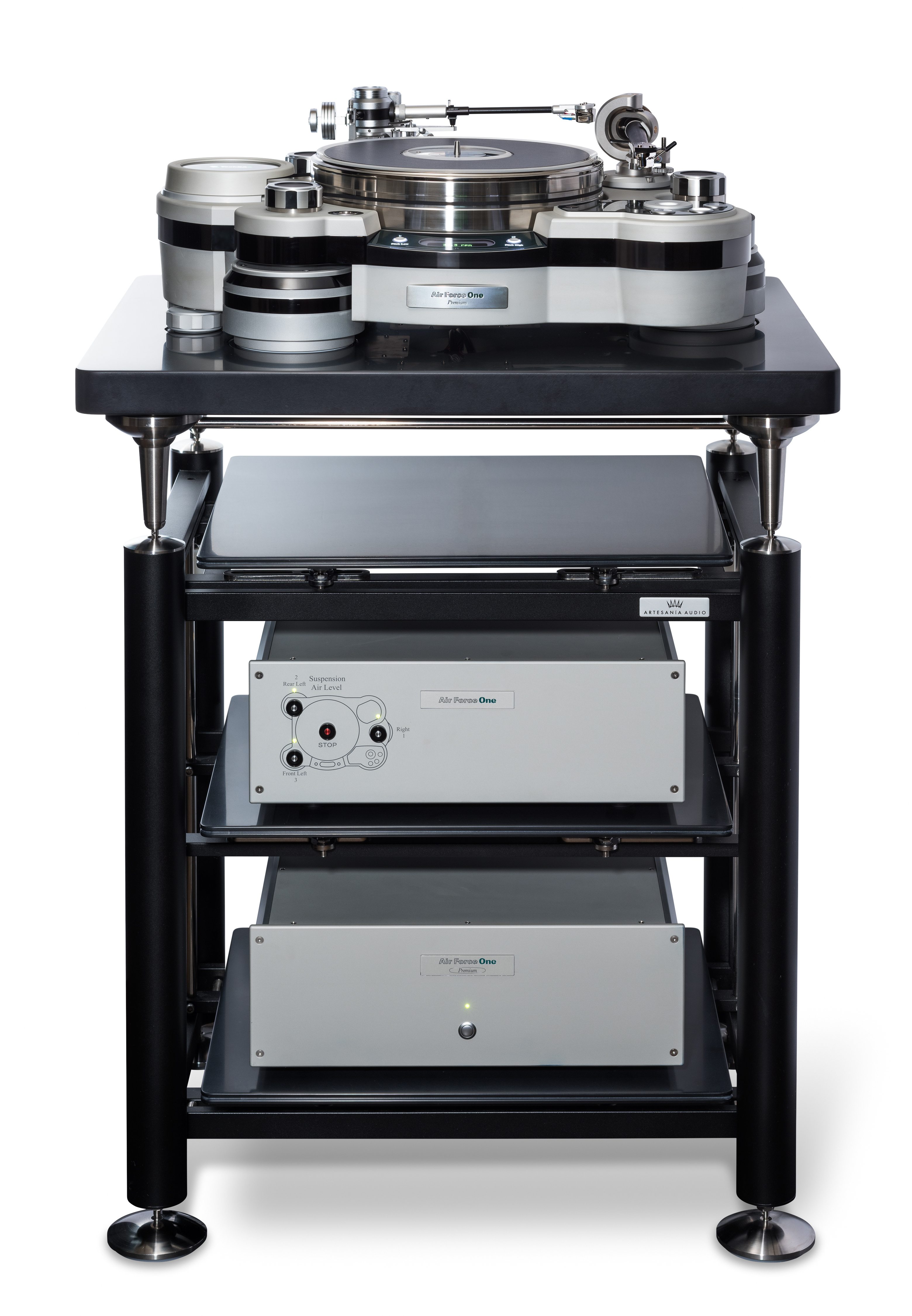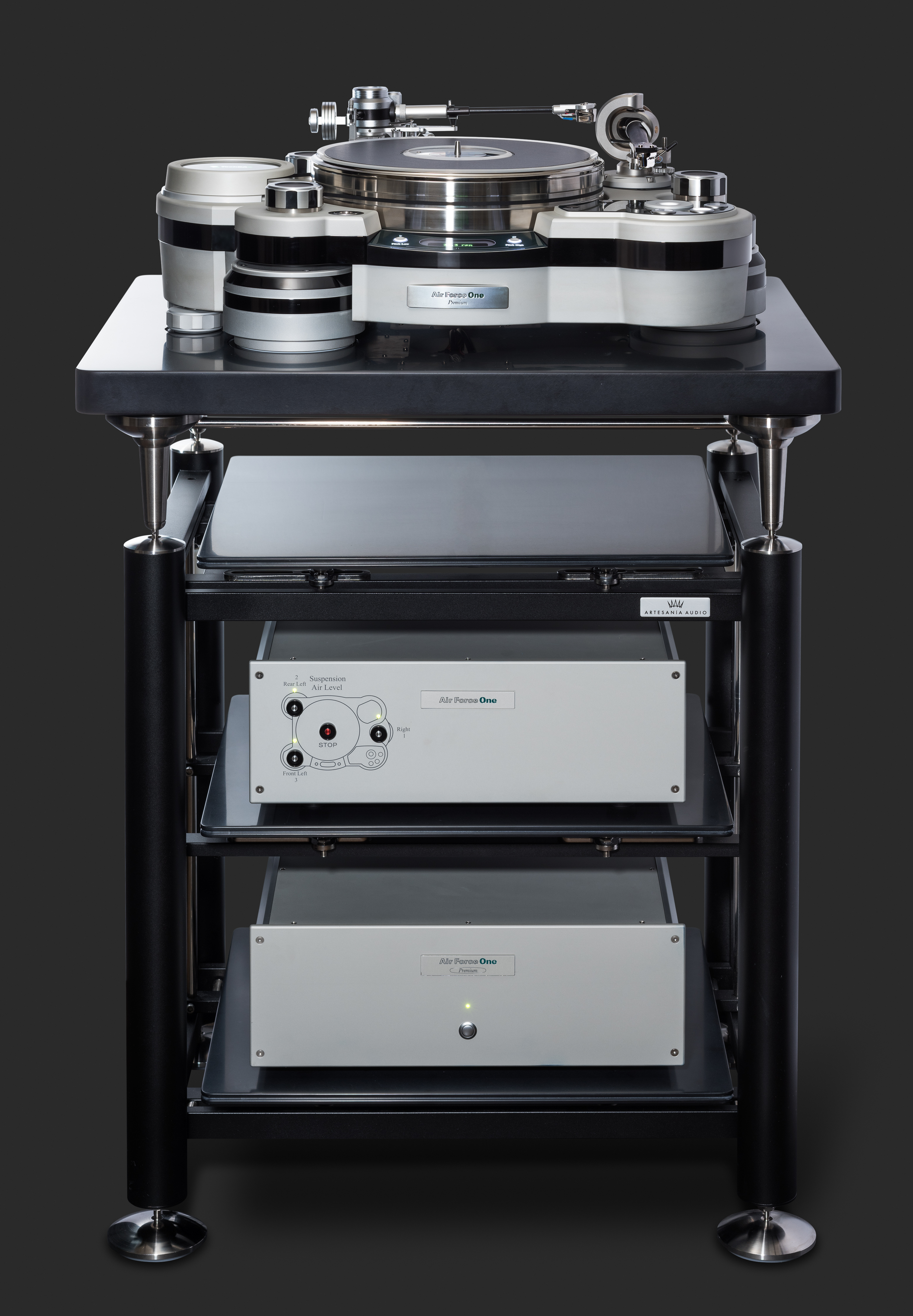 Air Force One Premium – топовая модель TechDAS с пневматической подвеской поворотного диска. С момента своего дебюта, Air Force One получил мировое признание как один из лучших аналоговых проигрывателей в мире. Компания стремилась к тому, чтобы добиться еще более высоких стандартов в последующие годы: повышение удобства для пользователя, улучшение технических решений, изысканность и внешняя эстетичность с помощью новых методов отделки, и многое другое. Все улучшения были включены в Air Force One Premium.